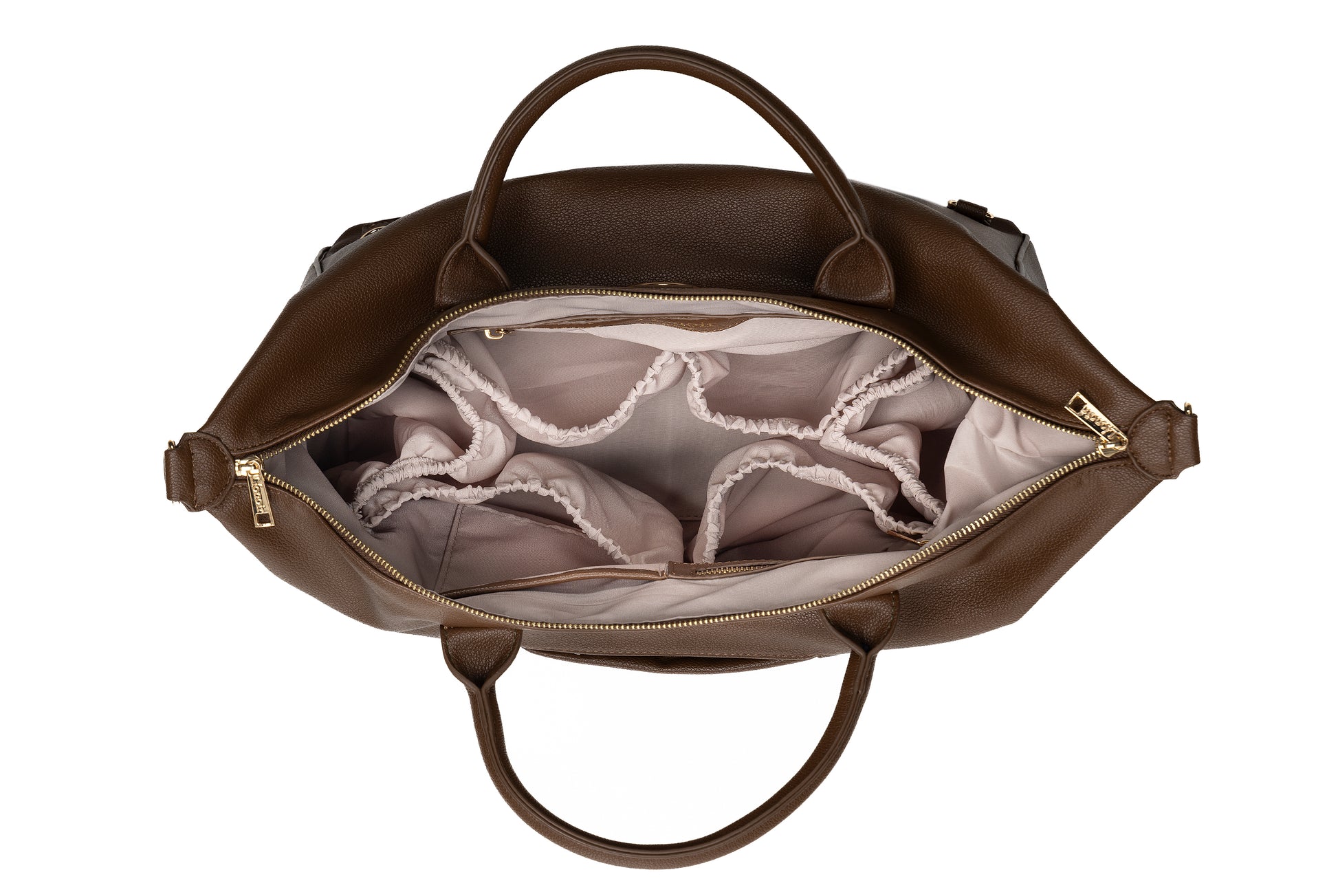 Uniseks design: Tijdloos bruin met subtiele details – geschikt voor zowel mama’s als papa’s.
